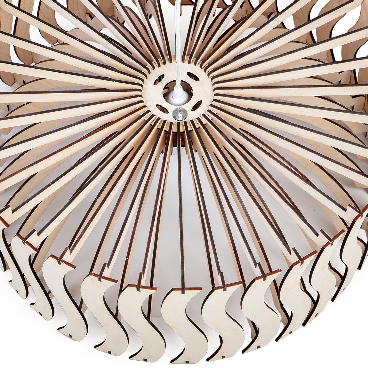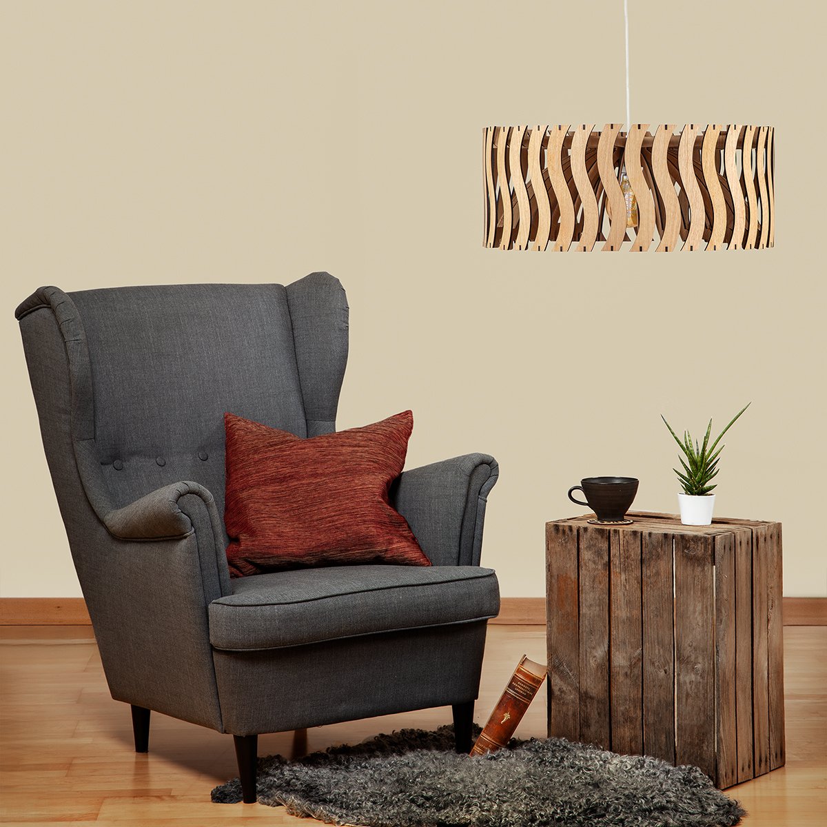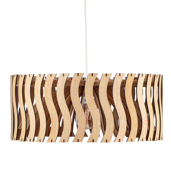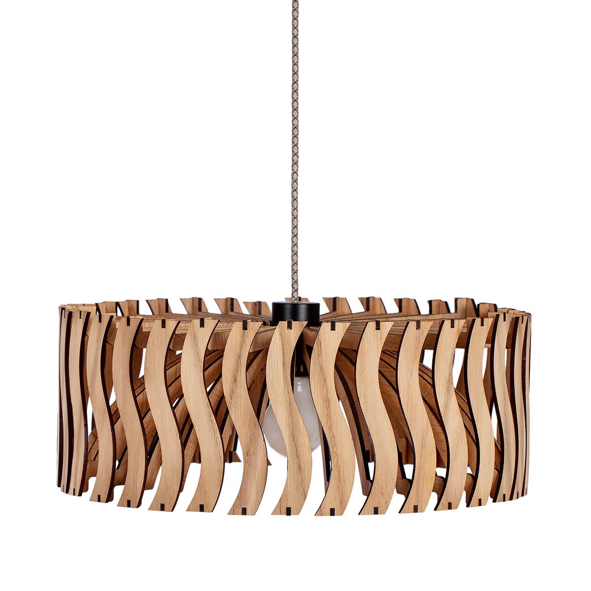 STRATA är en vågformad taklampa i trä som omedelbart fångar ögat med sin unika vågformade design. STRATA utstrålar en känsla av rörelse och organisk elegans. Lampan är konstruerad av flera vertikala trälameller som är arrangerade i ett fascinerande sicksack- eller vågmönster runt en cylinderformad stomme.