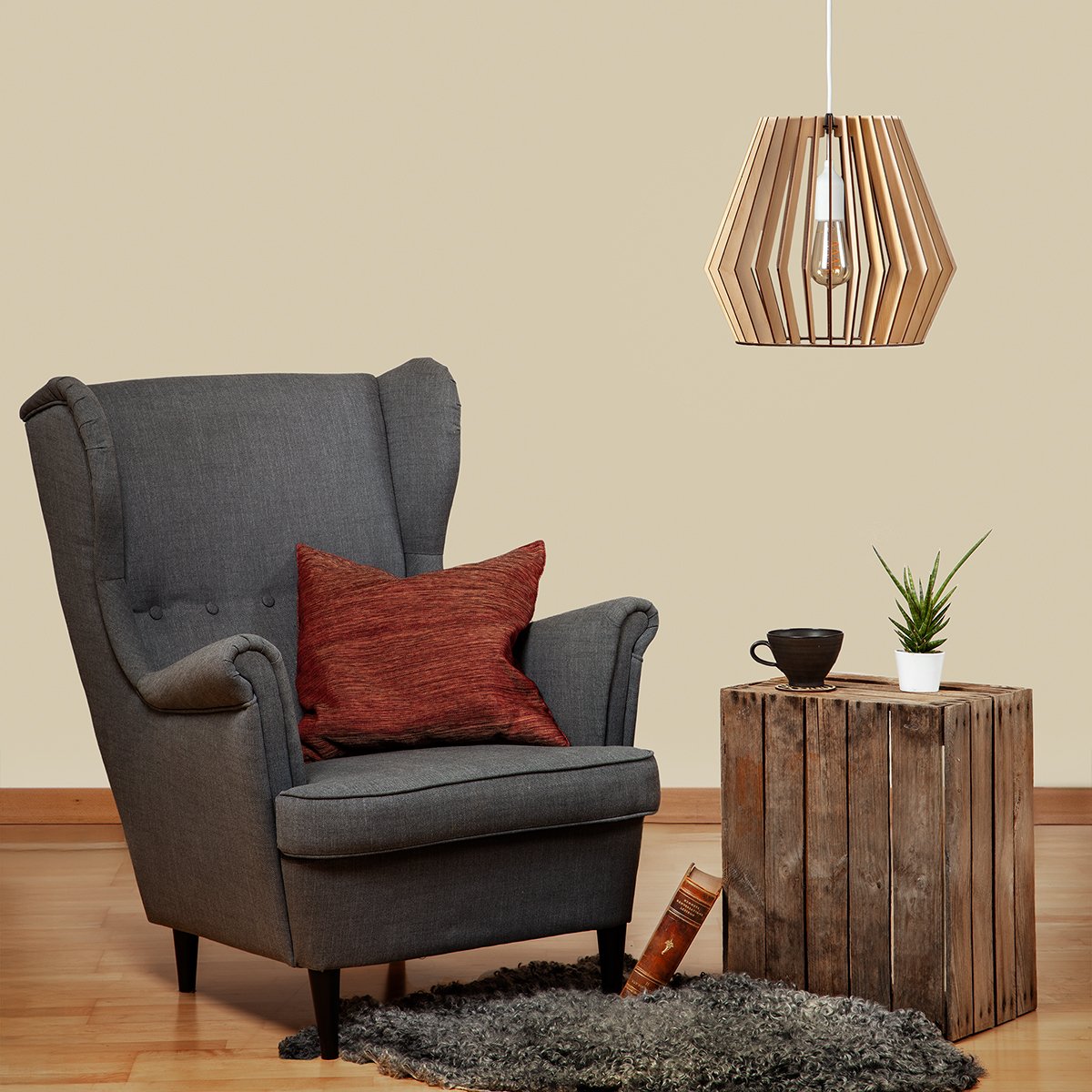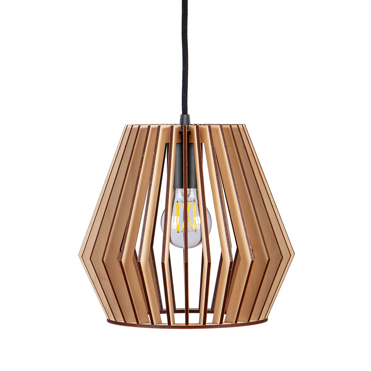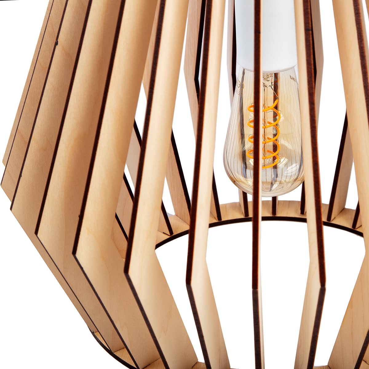Denna eleganta taklampa är skapad av noggrant utvalda trälameller, som är smart sammansatta för att bilda en fascinerande, fasetterad silhuett. Träets ljusa toner och vackra ådring ger lampan en organisk känsla samtidigt som den skarpa, moderna formen tillför karaktär och dynamik till rummet. VEGA:s öppna konstruktion låter ljuset sprida sig fritt och skapa vackra mönster av ljus och skugga, vilket ger liv åt varje yta.